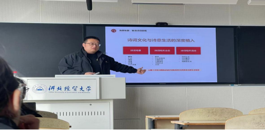 首先,曹总为我们介绍了守艺集团近几年打造的文旅商业街区,有裕华区火车头步行街、正定旺泉古镇、古栾水镇、土门关驿道小镇,还有最新开发的深泽县滹沱码头步行街,同学们对曹总分享的主题产生了浓厚的兴趣。曹总在集团项目介绍之后,主要从四个方面为我们讲解了如何打造文旅街区。首先,他以古栾水镇为例具体讲解了文旅街区的打造过程,从策划、设计、实施、运营四个方面进行分析。曹总说一个计划的主要核心就是策划,还给我们看了古栾水镇打造的宣传片,我们看着以前贫瘠的地方通过文旅商业景区的打造变得繁华热闹,心里产生了很强烈的感触,对旅游管理专业的社会价值有了更深刻的理解。最后,曹总和我们进行了愉快的交流,他提出了一些大学生视角的问题,我们也根据自己的感知,对曹总的问题进行了回答。