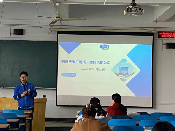 随后,王林霞部长又以文化为主线,带领同学们了解君乐宝的发展历程、发展过程中遇到的困难以及其中动人心弦的故事。王部长为同学们介绍了君乐宝的企业精神——不屈不挠、永不言败、诚实可靠、敢想敢干、坚持到底和对于君乐宝人的“六项精进”:第一,付出不亚于任何人的努力;第二,要谦虚,不要骄傲;第三,每天都要反省;第四,活着就要感恩;第五,积善行,思利他;第六,不要有感性的烦恼。最后,王部长以面试官的视角为同学们讲述了一些面试中会提到的问题和需要注意的事项,其中着重提到了责任感、自信心和诚实。同学们也积极参与互动,探讨了一些职场中所需具备的能力和未来的职业规划。