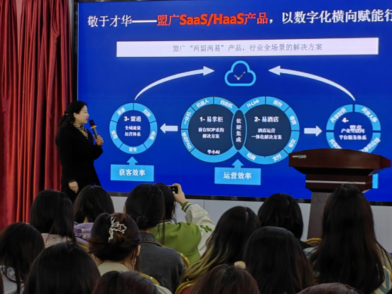 随后,杨经理就数字化技术推动酒店行业的转型与变革进行细致阐述,尤其是数字化技术体现在对客服务、日常运营、后台管理等前中后端的业务流程的迭代跃迁,并通对华住集团基于SaaS/HaaS技术架构的“两盟两易”运营平台的讲解,描述了华住集团为酒店行业全场景赋能所提供的系统化解决方案,真正使得中国酒店业实现了业务线上化、运营移动化、流程自动化、数据智能化的“四化”建设目标。