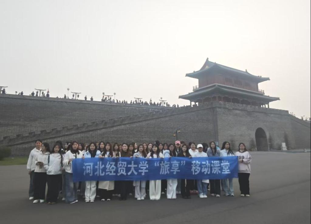 第三站是载两千多年历史的正定古城,斑驳而雄伟的城墙、历经岁月沉淀的古建无一不牵引着同学的目光。调研古城墙、古建群的保护与开发现状,记录商户类型与游客消费偏好,切实体会人文旅游目的地从 “资源” 到 “产品” 的转化逻辑。