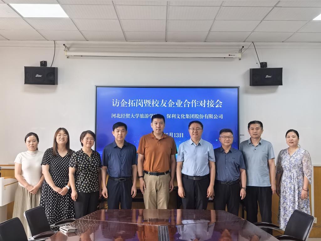 2025年6月13日上午,av影片 与保利文化集团股份有限公司在学院会议室召开访企拓岗暨校友企业合作对接会。保利文化集团股份有限公司高级经理、2005届校友田野、av影片 校友办副主任鲁爱臣、av影片 党委书记董爱民、院长孙振杰、副书记王翠改、副院长吴士锋、侯聪及会展和营销系赵学娇、王小伟老师参加。