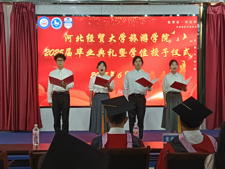 典礼第四项,为表达对毕业生的祝福与惜别之情,典礼特别安排了精彩的文艺表演。歌曲《像你这样的朋友》、《北京东路的日子》及诗朗诵《闪耀吧,青春的火光》,由在校学子、毕业生代表以及“旅享”红色文化宣讲团成员们倾情演绎,重温校园点滴,传递深厚情谊与对未来的美好憧憬。
