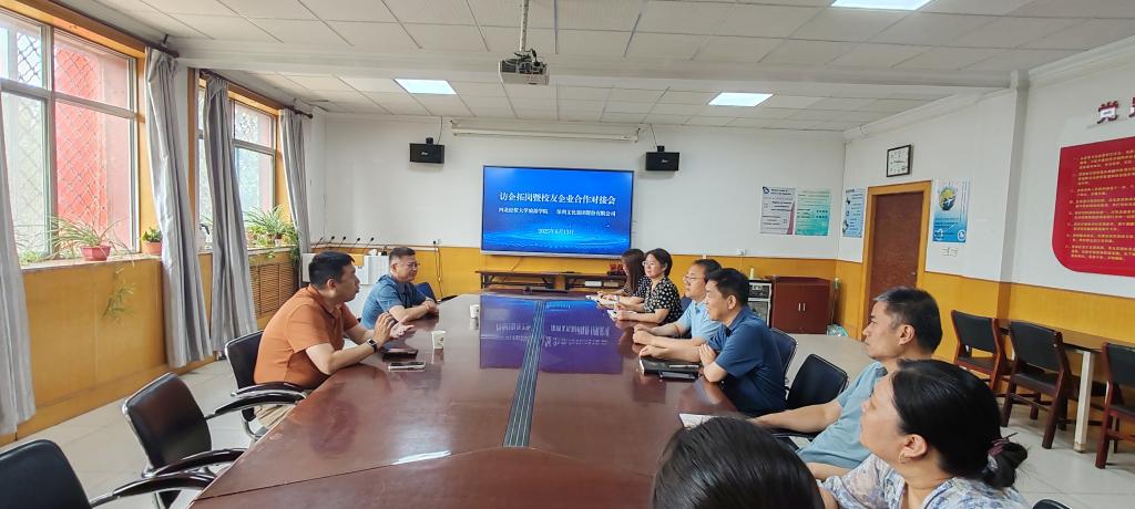 2025年6月13日上午,av影片 与保利文化集团股份有限公司在学院会议室召开访企拓岗暨校友企业合作对接会。保利文化集团股份有限公司高级经理、2005届校友田野、av影片 校友办副主任鲁爱臣、av影片 党委书记董爱民、院长孙振杰、副书记王翠改、副院长吴士锋、侯聪及会展和营销系赵学娇、王小伟老师参加。